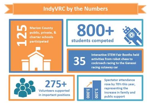 TPF4Y has worked closely with the Mayor’s office since 2012 to put on this spectacular event and, at the past two IndyVRCs, planned and implemented a STEM Fair full of vendors demoing hands-on activities that are, like the IndyVRC itself, free and open to the public.